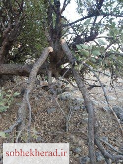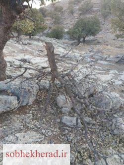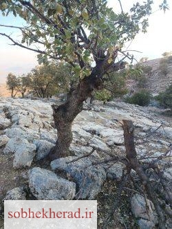 قطع درختان بلوط در ارتفاعات مشرف به روستای مالملا از توابع لنده؛ درخواست ورود فوری مسئولانه+تصاویر